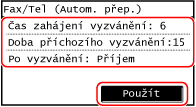 Když je povoleno nastavení [Fax/Tel (Autom. přep.)], které zjišťuje, zda je příchozí volání fax, můžete též nakonfigurovat nastavení jako doba vyzvánění.