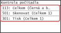 Můžete zobrazit počitadlo zobrazující celkový počet zkopírovaných a vytištěných stránek.