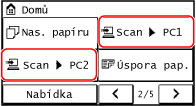 Originál můžete naskenovat a naskenovaná data uložit do počítače připojeného k zařízení. Stačí, abyste pracovali pouze na zařízení. Podle nastavení uložených do klávesové zkratky na obrazovce [Domů] nebo