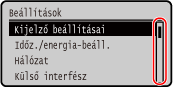 elem a jelzett irányba görgethet a képernyőn. Az aktuálisan kiválasztott elem invertálva jelenik meg.