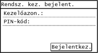 Ha be van állítva a rendszerkezelői azonosító, akkor a bejelentkezési képernyő a rendszergazdai jogosultságot igénylő műveleteknél is megjelenik. A bejelentkezéshez adja meg a rendszerkezelői azonosítót és a PIN-kódot.