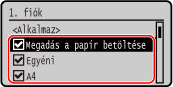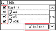 Szüntesse meg az elrejteni kívánt papírméretek melletti jelölőnégyzetek kijelölését, és nyomja meg az [Alkalmaz] gombot.