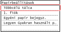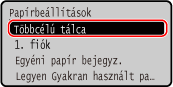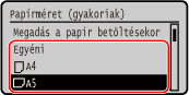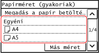 Ha készülékbe használt nem szabványos papírméretek vannak bejegyezve, akkor a bejegyzett méret jelenik meg papírméretként. Nem szabványos méretű papír (egyéni papír) bejegyzése