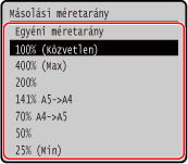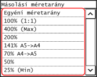 ![]() és [Eredeti típusa] ![]() lehetőséget is használhatja.Különböző méretű eredeti dokumentum esetén előfordulhat, hogy a kép egy része hiányozni fog, vagy a készülék kisebb méretben nyomtatja ki a képet.