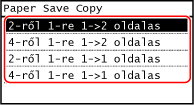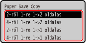 Ha papírt szeretne megspórolni több eredeti dokumentum másolásakor, használja a papírtakarékos másolás funkciót. Ezzel a funkcióval egyszerre végezhet N-ről az 1-re másolást és kétoldalast másolást a [Főképernyő] képernyőről vagy a vezérlőpult