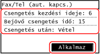 Állítsa be a csengetés időtartamát és a faxfogadási műveletet, majd nyomja meg az [Alkalmaz] gombot.