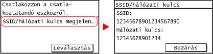 A készülék SSID-azonosítójának és hálózati kulcsának megtekintéséhez válassza az [SSID/hálózati kulcs megjelenítése] lehetőséget.