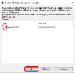 Jelölje be a készülék jelölőnégyzetét, és kattintson az [OK] gombra.