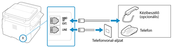 Csatlakoztassa a mellékelt telefonkábelt a készülék telefoncsatlakozójához (LINE) és a fali telefonvonal-csatlakozóhoz.