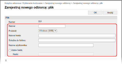 Rejestrując folder udostępniony jako miejsce docelowe, przygotuj poniższe informacje i przechowuj je w pobliżu: