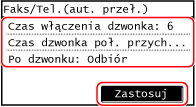 Ustaw czas dzwonienia i działanie podczas odbierania faksu, a następnie naciśnij [Zastosuj].
