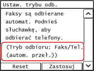 Zastosowane zostaną ustawienia skonfigurowane w podręczniku konfiguracji faksu, a typ linii telefonicznej zostanie skonfigurowany automatycznie.