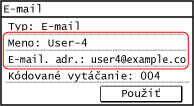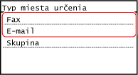 Pre informácie o mieste určenia stlačte tlačidlo [E-mailová adresa] alebo [Faxové číslo], zadajte tieto informácie a stlačte tlačidlo [Použiť].