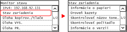 Keď klepnete na názov položky alebo tlačidlo, môžete túto položku vybrať. Zobrazí sa zvolená obrazovka alebo sa vykoná zvolená funkcia.