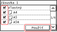 Zrušte začiarknutie políčok veľkostí papiera, ktoré chcete skryť, a stlačte tlačidlo [Použiť].