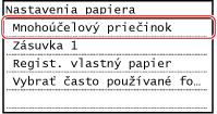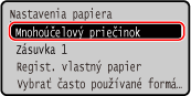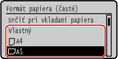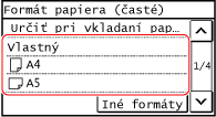 Keď sú zaregistrované často používané neštandardné veľkosti papiera, ako veľkosť papiera sa zobrazí zaregistrovaná veľkosť. Registrácia papiera s neštandardnou veľkosťou (papier vlastnej veľkosti)
