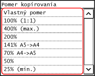 ![]() a [Typ originálu] ![]() zmeníte nastavenia pre každý originál.Ak je veľkosť originálu iná, časť obrázka môže chýbať alebo sa obrázok môže na papier vytlačiť s menším rozmerom.