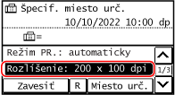 Zadajte faxové číslo pomocou číselných tlačidiel alebo vyberte miesto určenia zaregistrované v adresári stlačením tlačidla [Miesto urč.] na vykonanie telefonického hovoru.