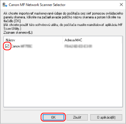 Začiarknite políčko pre toto zariadenie a kliknite na tlačidlo [OK].