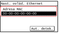 IP adresa zariadenia a informácie o adrese MAC sú potrebné na použitie vzdialeného používateľského rozhrania a na konfiguráciu nastavení brány firewall. Skontrolujte tieto nastavenia.
