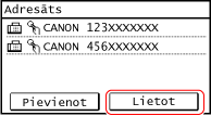 Ja tiek parādīts ekrāns [Adrešu grāmatas PIN], ievadiet PIN un nospiediet [Lietot].
