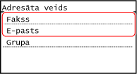 Ja, nosūtot faksa dokumentu starptautiskam adresātam, rodas saziņas kļūda, atlasiet [Starptautiskais (1)]. Ja kļūda nepazūd, atlasiet [Starptautiskais (2)] un [Starptautiskais (3)] (šādā secībā).