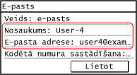 Adresāta reģistrēšana no skenēšanas vai faksa darba sūtīšanas darbu žurnālaVarat reģistrēt adresātu adrešu grāmatā no skenēšanas vai faksa darba sūtīšanas darbu žurnāla, veicot tālāk norādītās darbības.