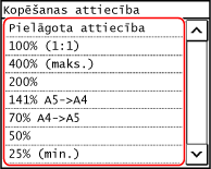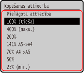 ![]() un [Oriģināla veids] ![]() , lai mainītu iestatījumus katram oriģinālam.Ja oriģināla formāts ir mazāks, daļa no attēla var nebūt redzama vai attēls uz papīra var tikt drukāts mazāks.