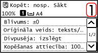 Tiek skenēts nākamais oriģināls, un tiek parādīts tas pats ekrāns.