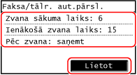 Iestatiet šo, kad saņemšanas režīmam tiek atlasīts [Faksa/tālruņa automātiska pārslēgšana]. Ja atlasījāt citu saņemšanas režīmu, šī darbība nav nepieciešama.