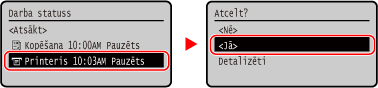 Šajā gadījumā atceliet drukāšanu, izmantojot iekārtas vadības paneli vai Remote UI (Attālais lietotāja interfeiss).
