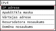 Varat skatīt iekārtai iestatīto IP adreses iestatījumu, piemēram, IPv4 adresi un IPv6 adresi.
