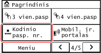 Valdymo skydelyje paspauskite [Kodinio pasp. nr.] ekrane [Pagrindinis].