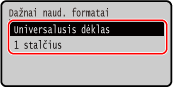 Rodomas ekranas [Pasirinkite dažnai naud. pop. formatus].