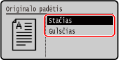 Pasirinkite nustatyto originalo orientavimą ir spustelėkite  .
