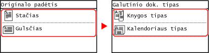 Pagal poreikį nustatykite originalo padėtį ir atvėrimo tipą, taip pat kopijos atvėrimo tipą.