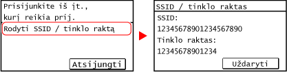 Paspauskite [Rodyti SSID / tinklo raktą] patikrinkite aparato SSID ir tinklo raktą.