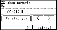 Prisijunkite prie „Remote UI“  [Settings/Registration]  [TX Settings]  [Fax TX Settings]  [Edit]  dalyje [Set Pause Time] įveskite pauzės laiką  [OK]