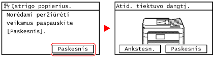 Išėmus visus įstrigusius popieriusNedelsdami atitraukite rankas nuo aparato, kad velenėliai neįtrauktų rankų ir drabužių.