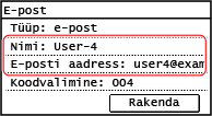 Sihtkoha teabe muutmiseks vajutage [E-posti aadress] või [Faksinumber], sisestage teave ja vajutage seejärel [Rakenda].