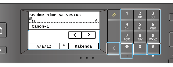 Sisestage tähtnumbrilised märgid juhtpaneeli numbriklahvidega.
