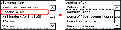 Kui kuvatakse kerimisriba, tähendab see, et mõnda üksust või teavet ei kuvata. Vajutage [
