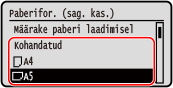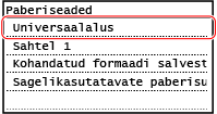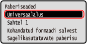 Kui paber on universaalalusele pandud, kuvatakse juhtpaneelil paberiformaadi ja -tüübi määramise kuva.