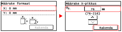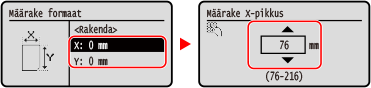 3 | Sisestage väärtused väljale [Y] samamoodi nagu väljale [X]. Kui registreeritakse sageli kasutatavad mittestandardsed paberiformaadid, kuvatakse paberiformaadina registreeritud formaat. Mittestandardse (kohandatud) formaadiga paberi registreerimine |