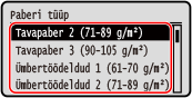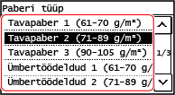 Valige registreeritav paberitüüp ja vajutage