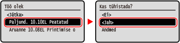 Kui kuvatakse tööde loend, valige tühistatav töö, valige [<Jah>] ning vajutage