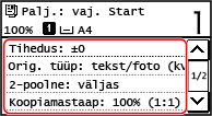 Lisaks põhilistele kopeerimisseadetele on seadmel ka seadeid ka kahepoolse kopeerimise ja pildikvaliteedi kohandamise jaoks ning muid seadeid vastavalt originaalile ja otstarbele. Konfigureerige need seaded kopeerimiskuva abil.