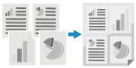 ![]() | Originaaldokumendi mitu lehekülge kopeeritakse ühele lehele, kahandades originaali suurust või printides need paberi mõlemale küljele. Kasulik on prinditud paberit säästa. Paper Save Copy (paberit säästev kopeerimine) |