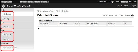 Kui logite System Manager Mode’iga sisse rakendusse Remote UI (Kaugkasutajaliides), kuvatakse kõigi prinditööde olek.