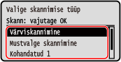 Valige skannimissäte ja vajutage